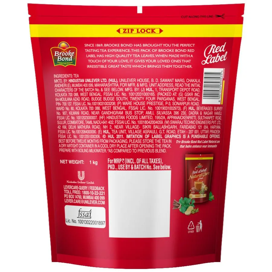 Brooke Bond Red Label is one of India’s largest selling packaged tea brands. Brooke Bond Red Label Tea is a blend CTC tea with best quality leaves; processed in the unique Brooke Bond Tea Excellence Centre. Since 1869, Brooke Bond has brought you the perfect tasting tea experience with the best-chosen leaves. It was in 1903 that Brooke Bond launched “Red Label”.